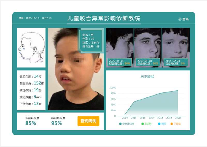 儿童常见病症,占儿童耳鼻喉科患者的20%以上综合立体建模,人脸识别等技术,通过大批患者数据和医生经验,训练出可适用的分析模型