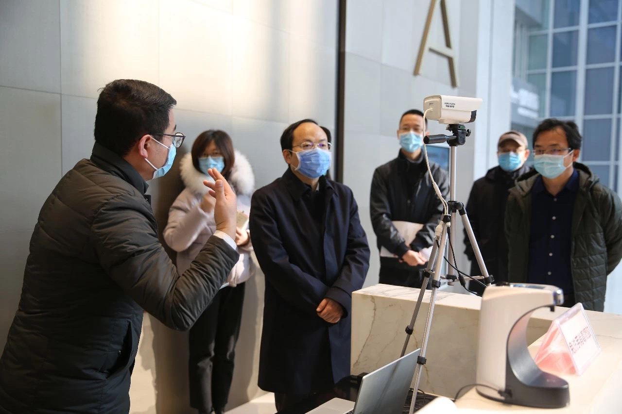 中关村科技园区管委副主任孙睿一行莅临华夏幸福创新中心,调研考察智能无感口罩佩戴监测报警系统为园区带来的AI抗“疫”保障! -